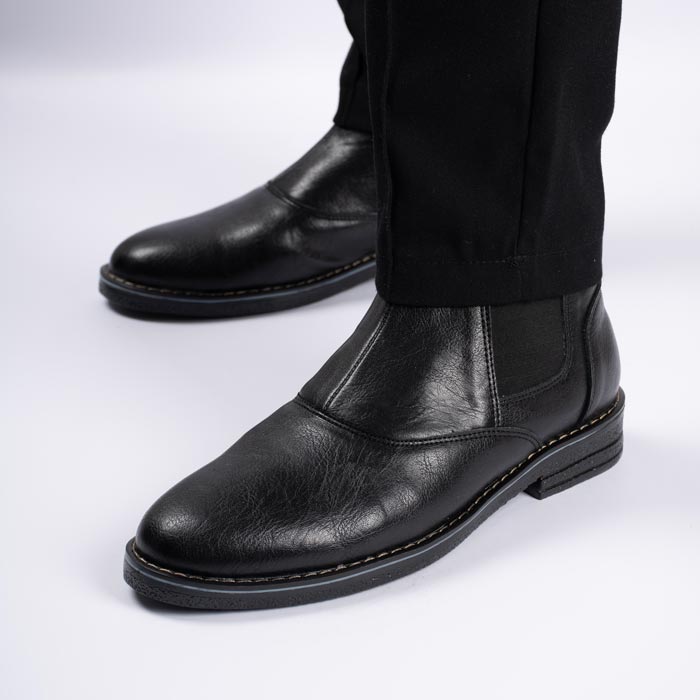نیم بوت چرم مردانه رنگ مشکی مدل چروک چلسی کشی کد 218